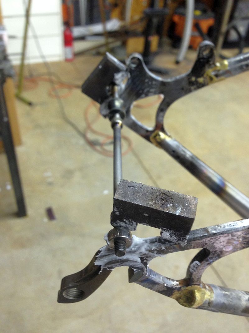 New seatstay fixture based on Alex Meade’s design and with two of his steel 5/8″ tube blocks.